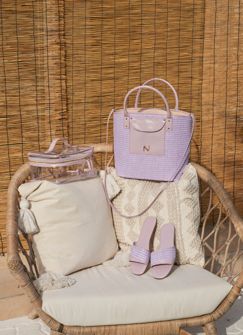 مجموعة الشاطئ هي مجموعة متناسقة تتألف من حقيبة الشاطئ ونعال الشاطئ ومنضدة الزينة الشفافة، وهي متوفرة معًا بسعر خاص. نسقي إطلالاتك هذا الصيف، مع الحفاظ على التنظيم والراحة.